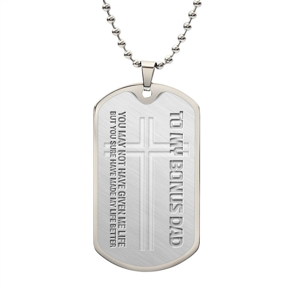 Whether you're looking for a heartfelt gift for your stepfather's birthday, Father's Day, or any special occasion, the Bonus Dad Necklace is a remarkable choice. Embrace the opportunity to celebrate the unique bond between a stepdad and their family and express your gratitude with this thoughtful piece that will be cherished for a lifetime.