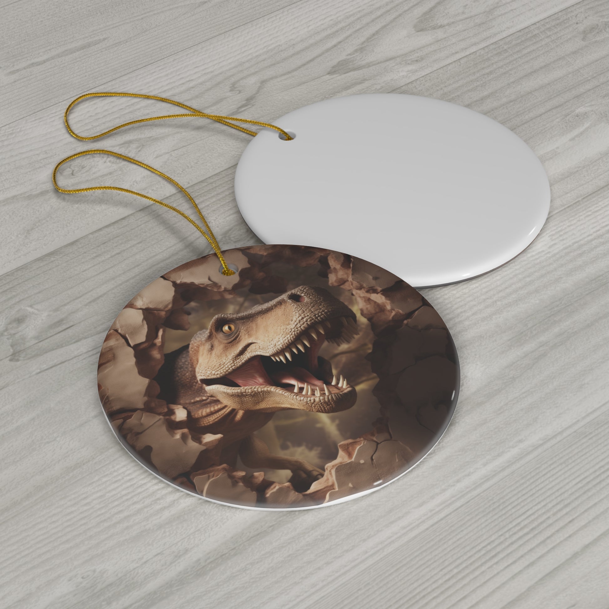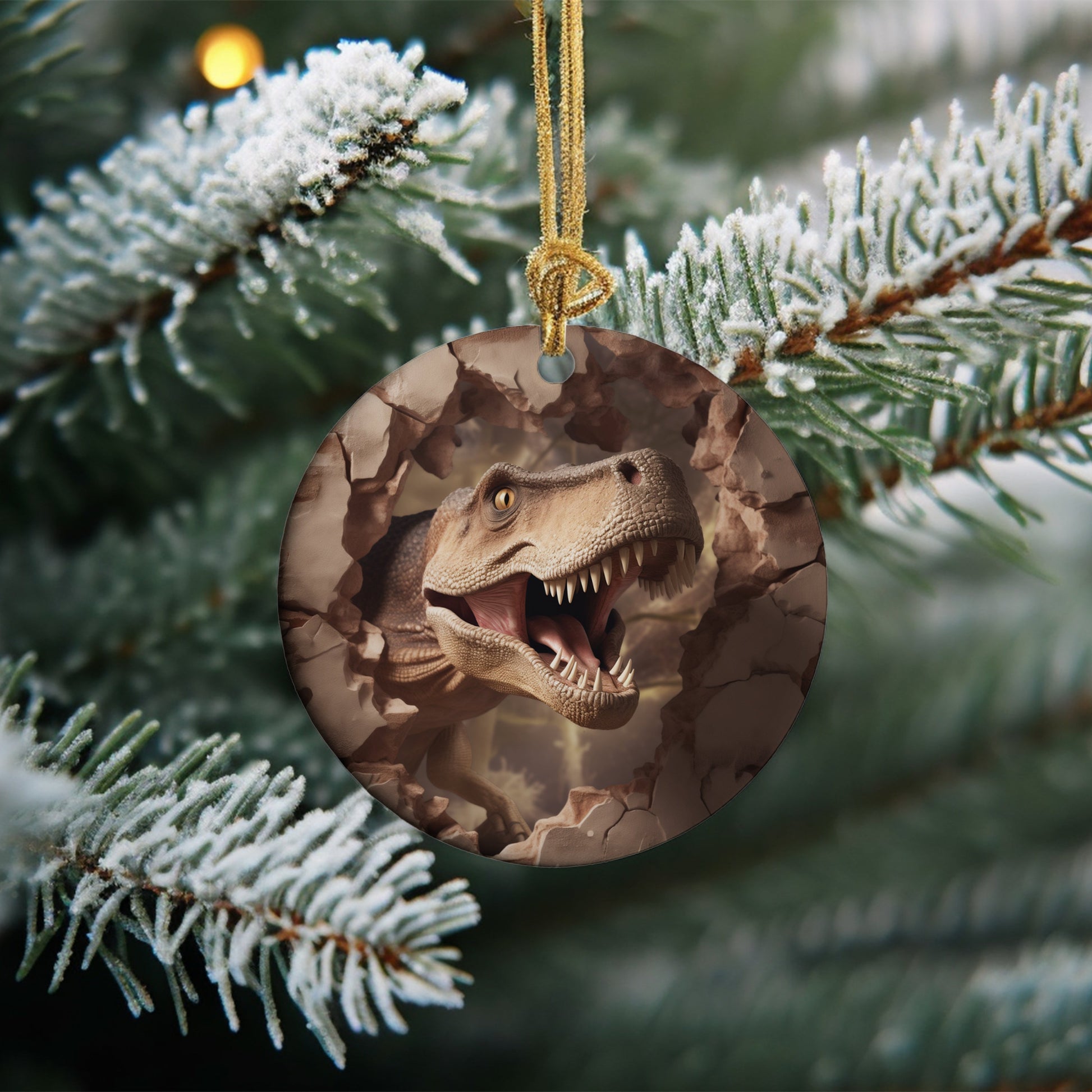 T-Rex Dinosaur Ornament Breaking Through A Wall