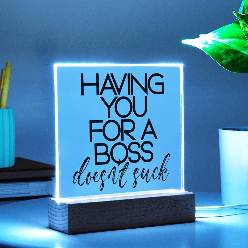 Funny Boss Gift - Having You For A Boss That Doesn't Suck Plaque