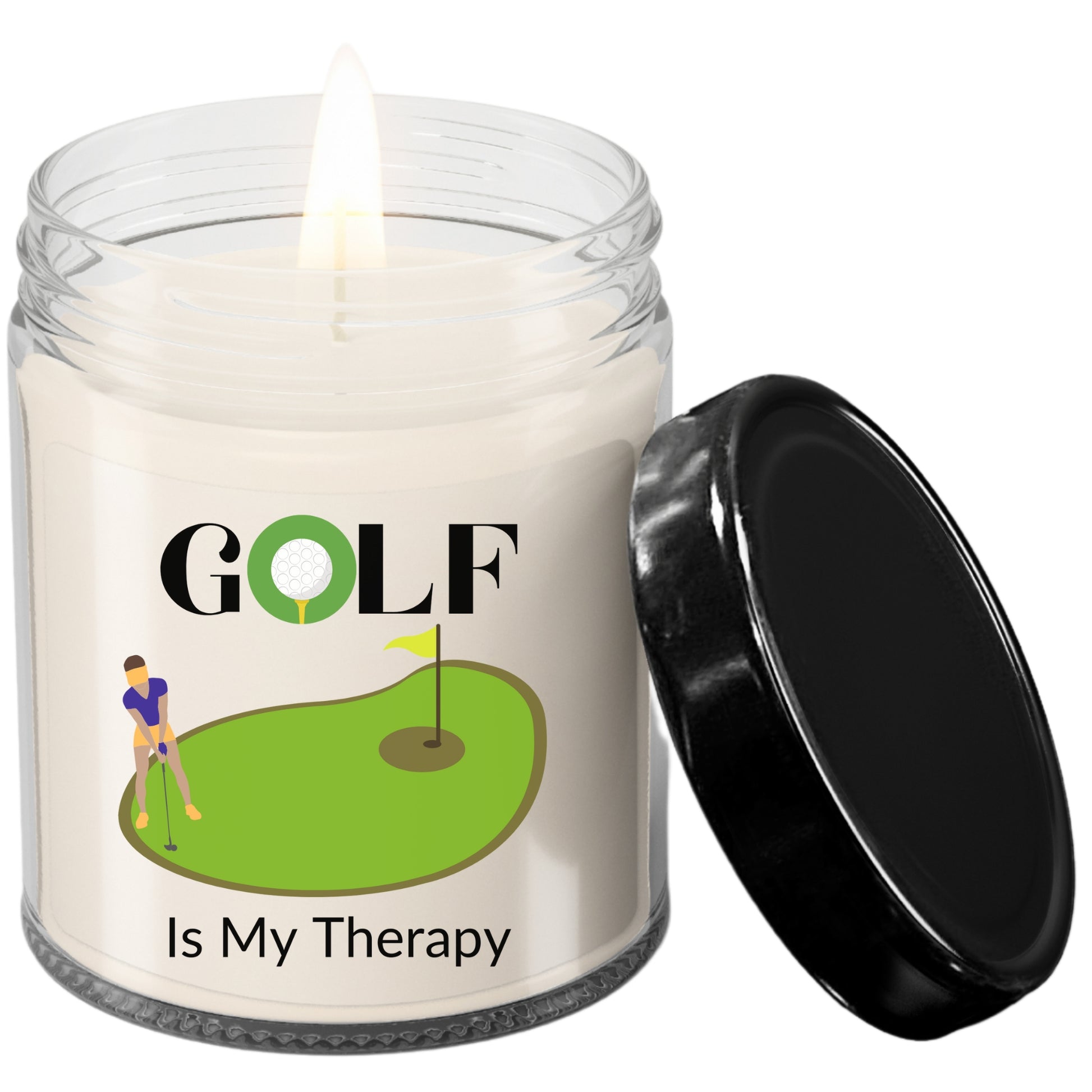 Looking for a unique gift to give a woman golfer? Then this candle is perfect! It says "Golf Is My Therapy" with a picture of a female golf player. Makes a great gift for the golf lover for Christmas, their birthday, or any day of the year you want them to feel special.