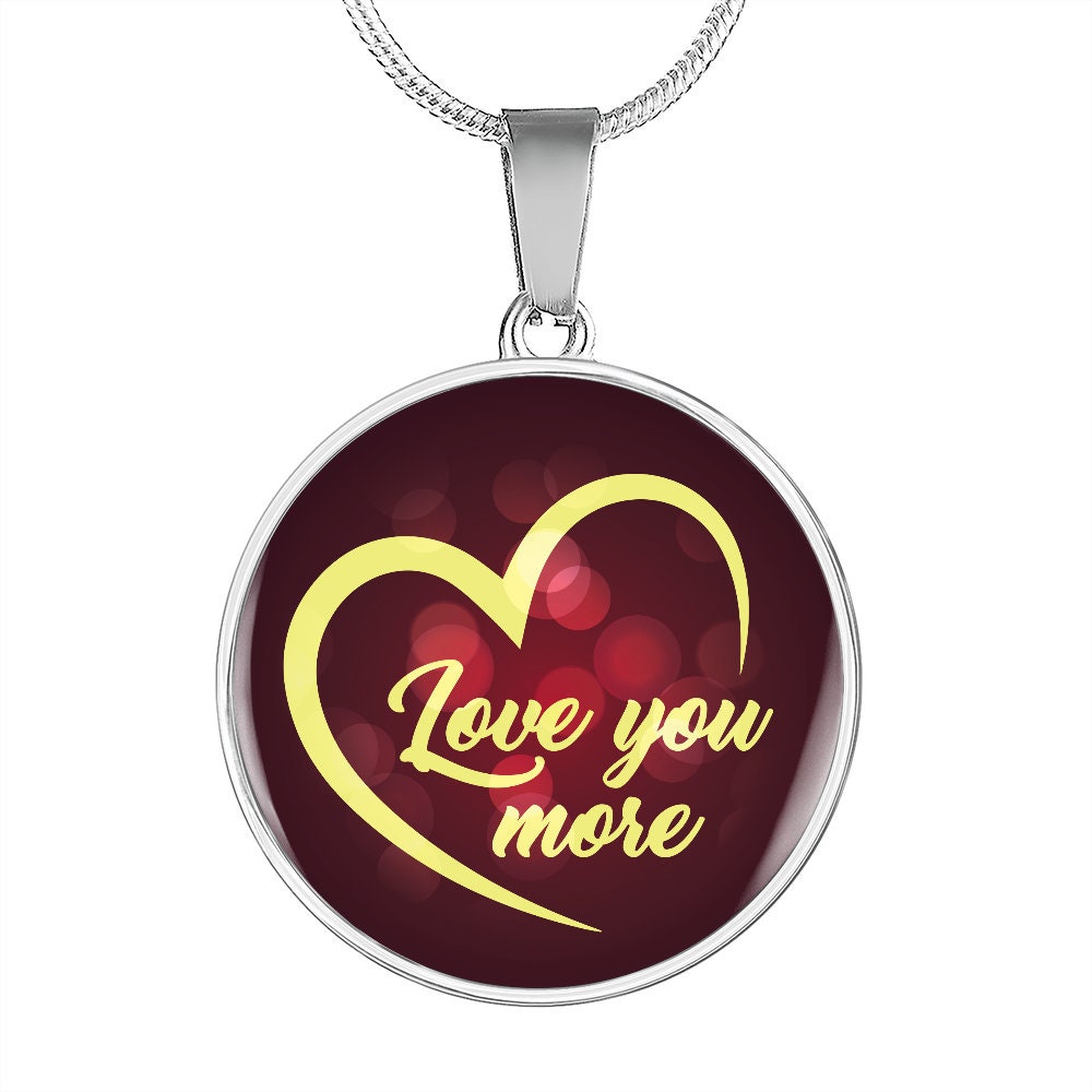 Give a loving gift that will make her heart melt with this beautiful Love You More Heart Necklace. It makes a special gift for Valentine's Day, her birthday, Anniversary, Christmas, or any day of the year you want her to feel loved. This love pendant will make a wonderful keepsake! It comes in a gift box ready for gift giving.