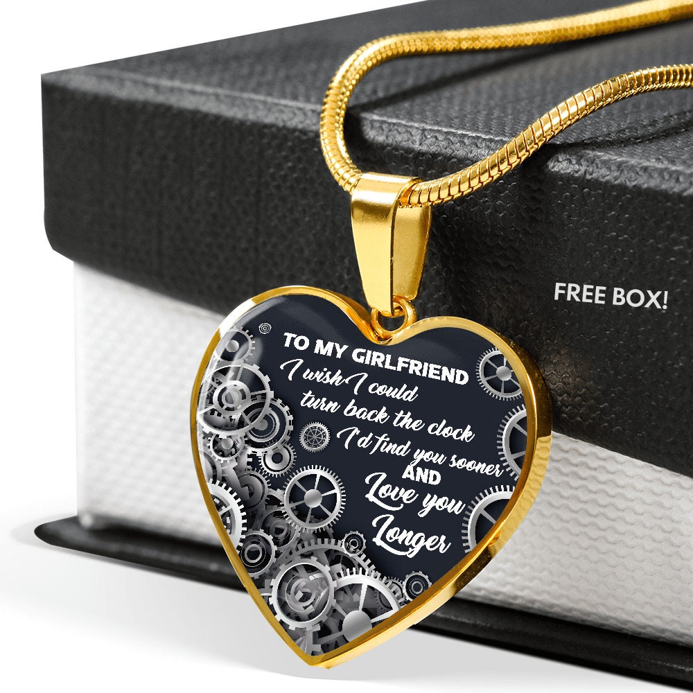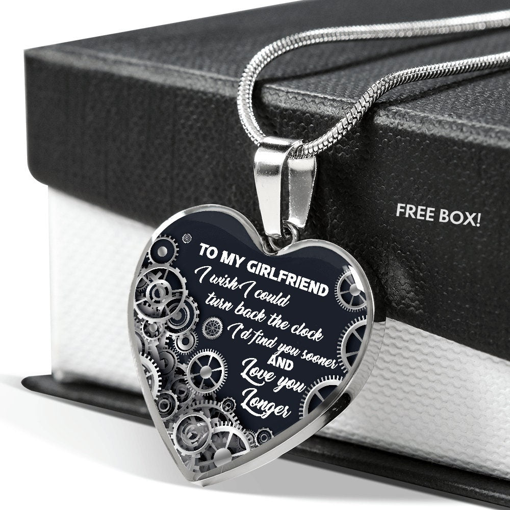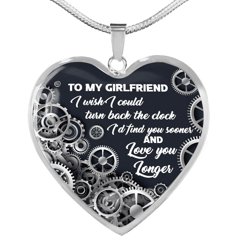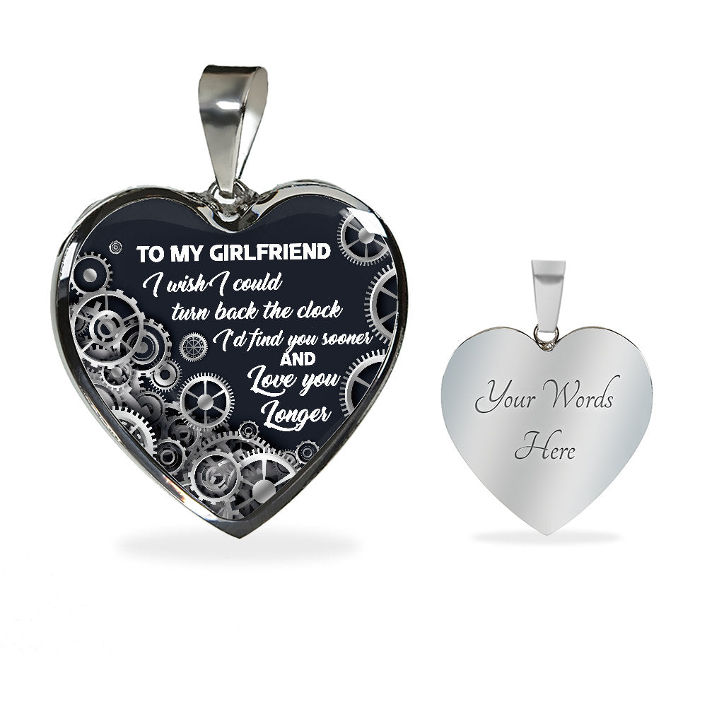 To My Girlfriend Turn Back The Clock Heart Necklace Pendant